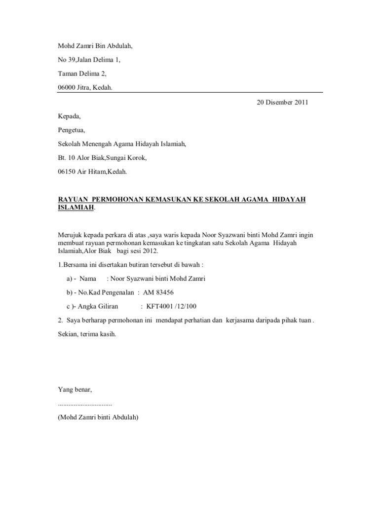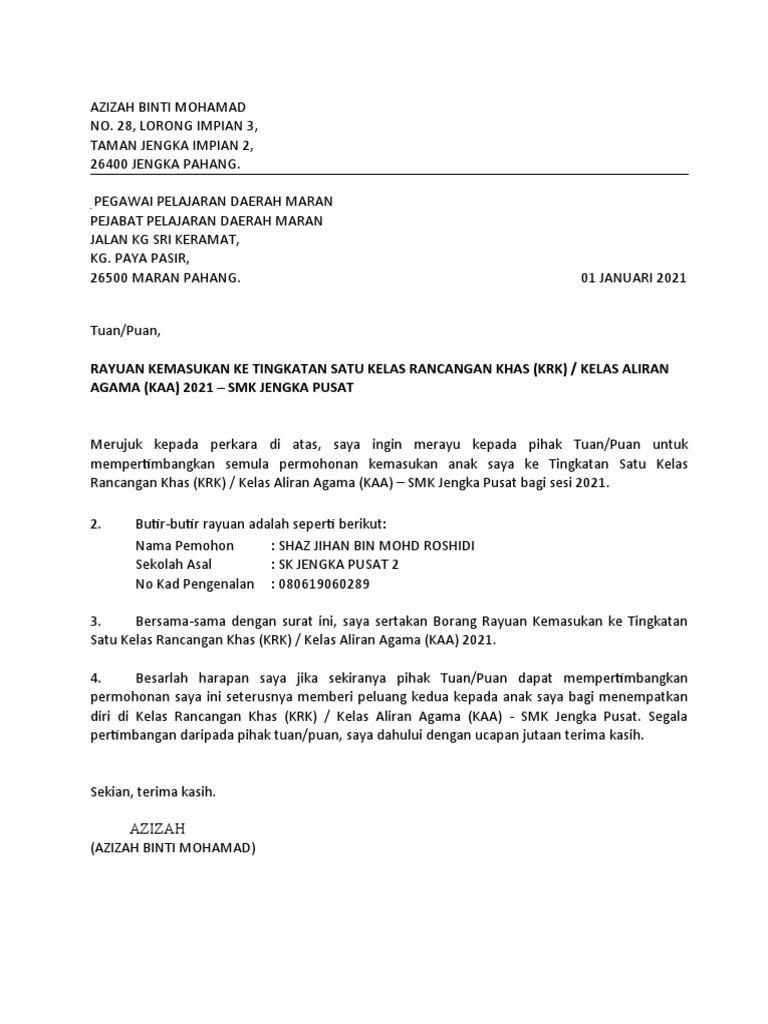 Surat Rayuan Smkjp Shazjihan Pdf