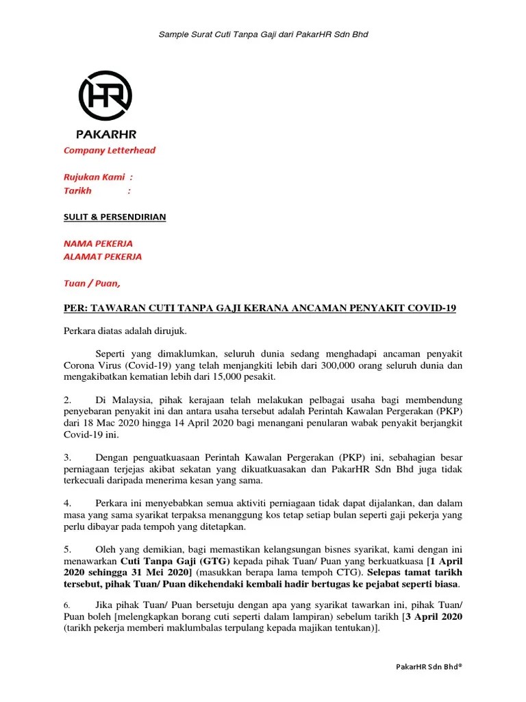 Contoh Surat Rasmi Cuti Tanpa Gaji Dari Majikan
