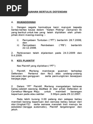 Contoh Hujahan Bertulis Defendan Kraambo